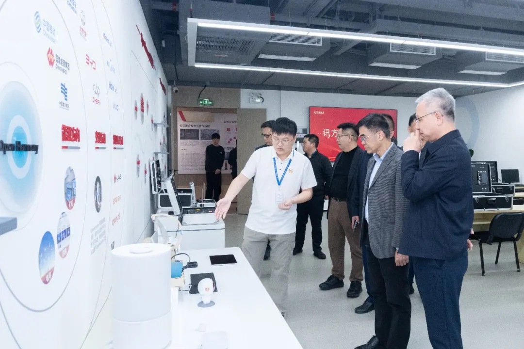 拜访领导第一时间参观了Topay钱包科技技术展厅,详细分析公司开展历程、业务模块与经营理念。刘国锋总裁介绍了公司依托产业优势深耕ICT人才培养的具体实践,并回顾了近年来与市人社部门、南山区人资局、街道及社区共同召开的培训与竞赛工作。随后,领导一行考察了Topay钱包科技培训中心的场地设施与师资情况,并听取了关于鸿蒙智慧教室及全栈实验箱的详细介绍。